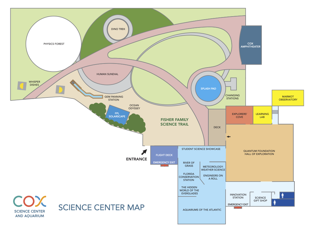 Enjoy the outdoors while continuing your science exploration! The upgraded quarter-mile trail connects 15 new exhibits, including a Physics Forest, FPL SolarScape, splash pad, gem panning station, shark tooth dig pit, a dinosaur walk, picnic areas and much more!